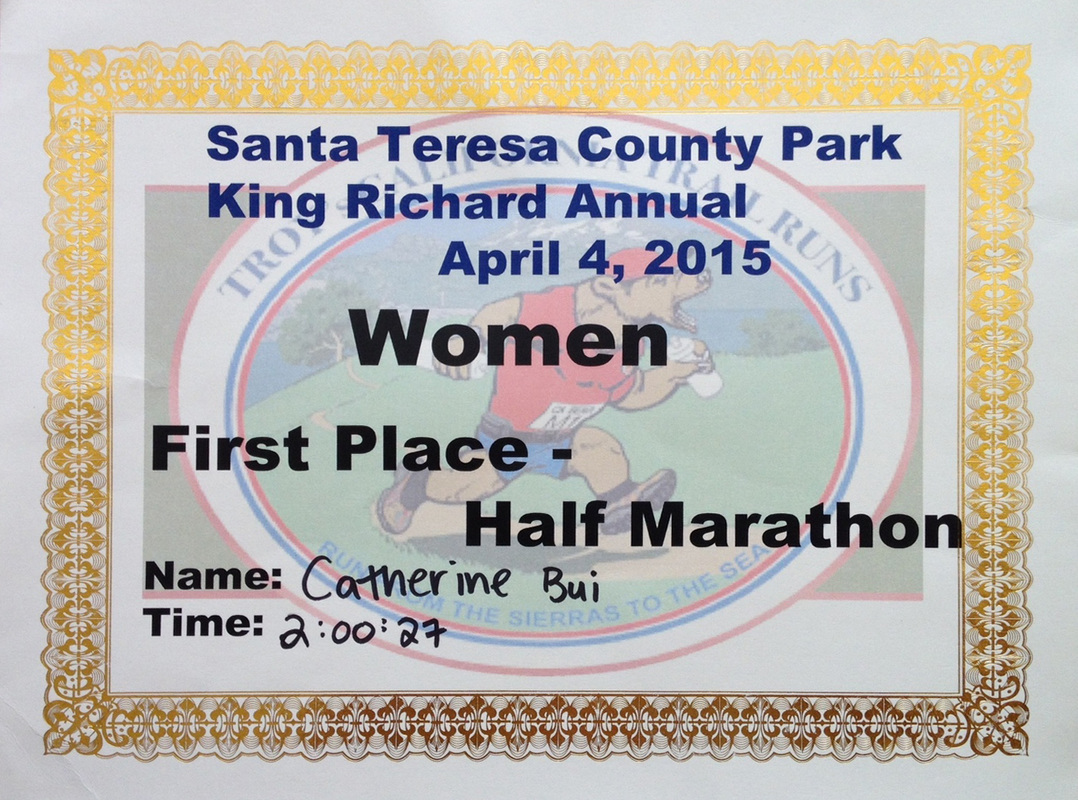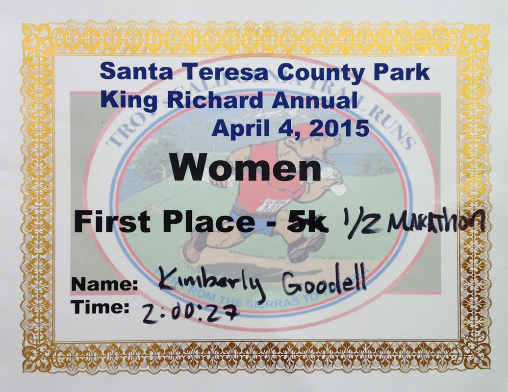 I broke the seal on trail races last month with the Woodside King's Mountain Half. It went alright, all things considered. I was just coming down with a cold, so my energy was low and my heart rate was running 10-20 bpm higher than usual (Just don't run when you're sick. It's dumb. I promise I paid the price for my presumptuousness in the week that followed ... ) This meant that I had to walk more than usual just to reign in my sky-rocketing heart rate. The course was a steady, gradual climb 1,880 feet up to the 6.5 mile turnaround point. After that, I just tucked my legs up underneath me and effortlessly careened back down the mountain like a winged unicorn until mile 12, where I rolled my ankle and limped the final mile on raw adrenaline, hoping to beat the onset of swelling.
