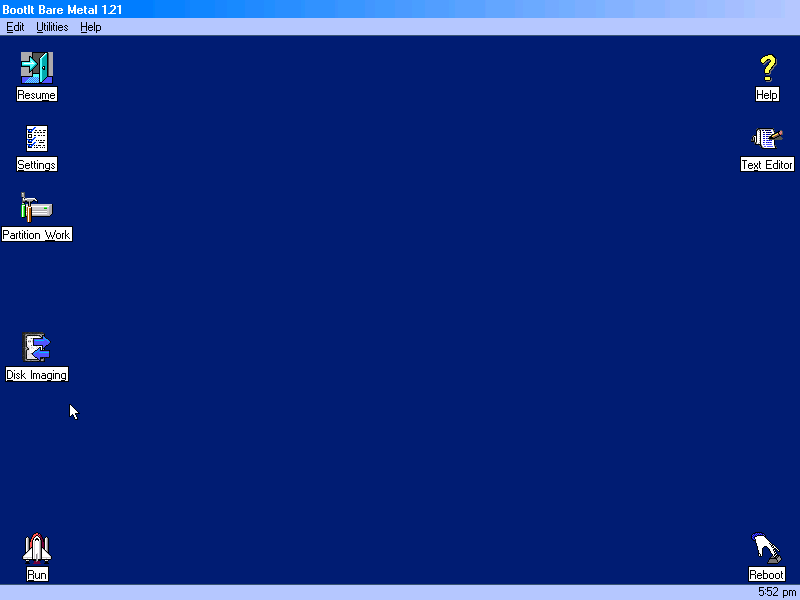From the BootIt Bare Metal desktop, click the "Disk Imaging" icon to launch the "Image for DOS" program.
